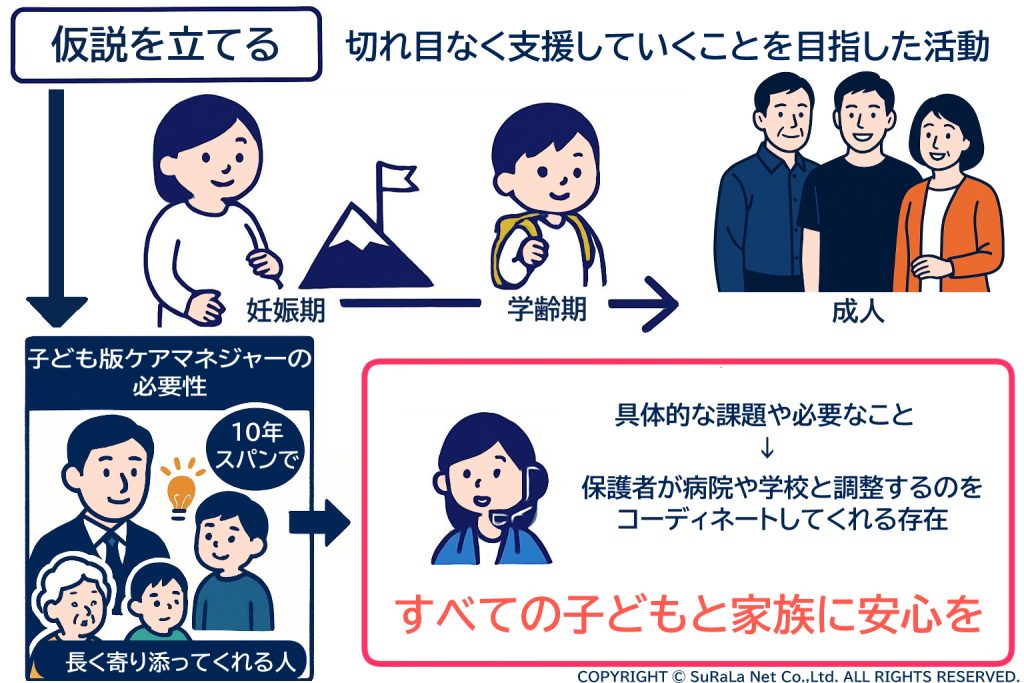 特に、手術を終えて地域に戻ってきた際に、地域の中に居場所がないと感じるご家族が多く、また学校や保育園との調整の難しさを感じている方も多いと知りました。私と同じような悲しい経験や葛藤を次の世代に引き継がないために、何か具体的なサポートができないかと考えたんです。