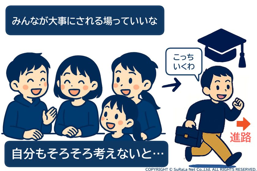 木下:そういう子たちに「中2だから、そろそろ高校進学を見据えて…」とか言っても、ふーんって感じになるだけ。進路指導してもうまくいかない。でも、だからといって高校に行かない選択をするには、すごく勇気がいる。本人が「ここがいい」と決めた高校に行くのであれば、それはそれで良いと思います。ただ、そのために「今のうちに学習面のレベルを上げておいたほうが後が楽だよ」っていう発想はありがたいし、意味もあると思うんですけど、本人にその気がないときに押し付けると、逆効果。なので、ある意味で「ほっといた方がいい」と思うこともあります。始まりは突然に、人それぞれに、です。