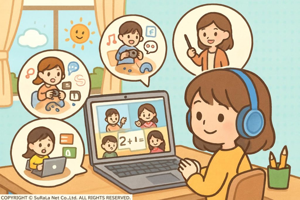 最近では、心身の状況から教育支援センターに通うのが難しい子どもや、人との関わりに不安を感じる子どものために、ICTを活用したオンラインでの支援が広がってきています。これにより、支援の選択肢が大きく広がり、どの子も一人ぼっちにならずに社会とつながりを保てるようになっています。