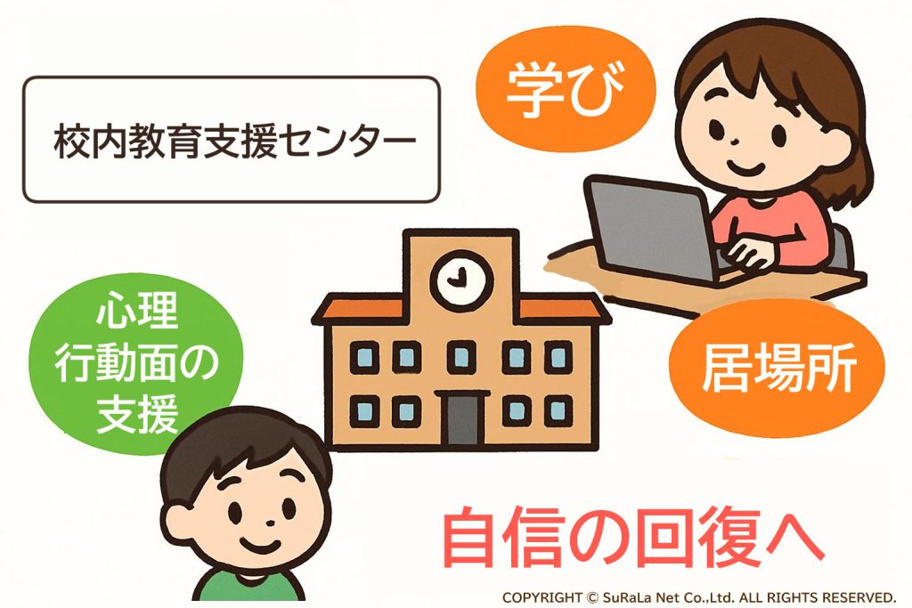 校内教育支援センターは在籍校内に拠点があるため、学習評価や出席の取り扱い、学級との連携が取りやすく、教室復帰への「橋渡し」の選択肢として有効です。