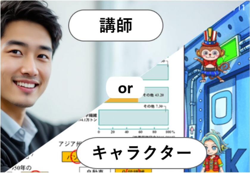 一方、キャラクターが先生役となる教材は、キャラクターとの親近感で学習を楽しく感じられる効果があります。対人関係に不安を感じる生徒にとっては、人が出てこないスタイルの方が取り組みやすいケースもあります。