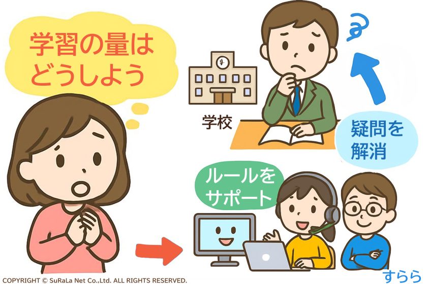 保護者の方から学校へ相談はしていただいており、認定後に「どの程度の量の学習目標を設定するか」などご不安に思っていることがあり、すららコーチやすらら本部への相談をしてくださいました。