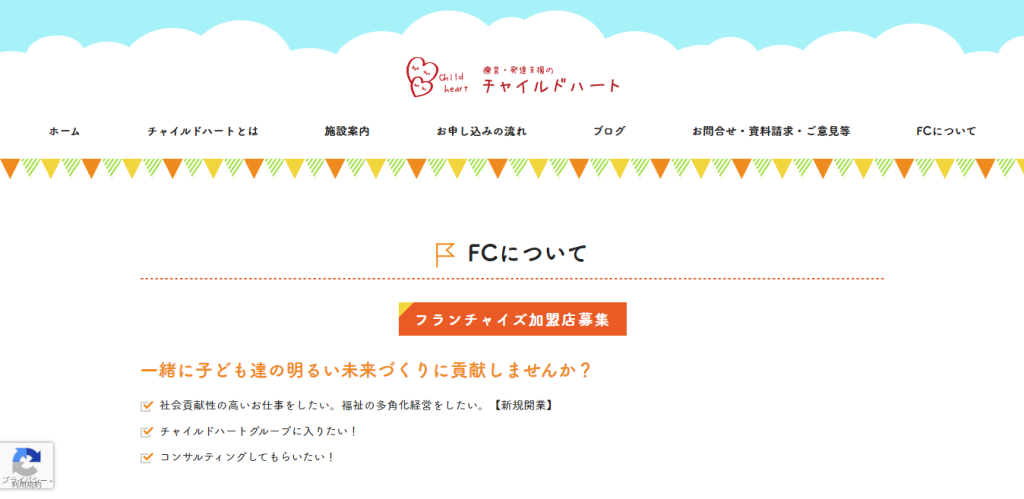西日本を中心に展開しているチャイルドハートは、児童発達支援と放課後等デイサービスのフランチャイズです。発達支援に関するノウハウを惜しみなく提供し、運営に対して徹底的なサポートをしてくれます。
