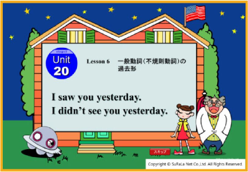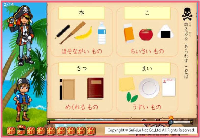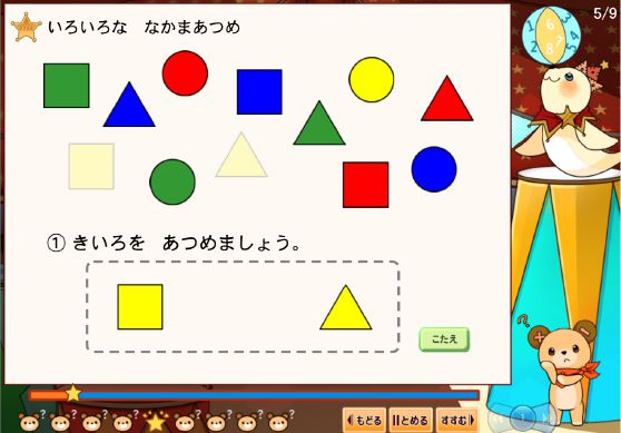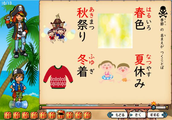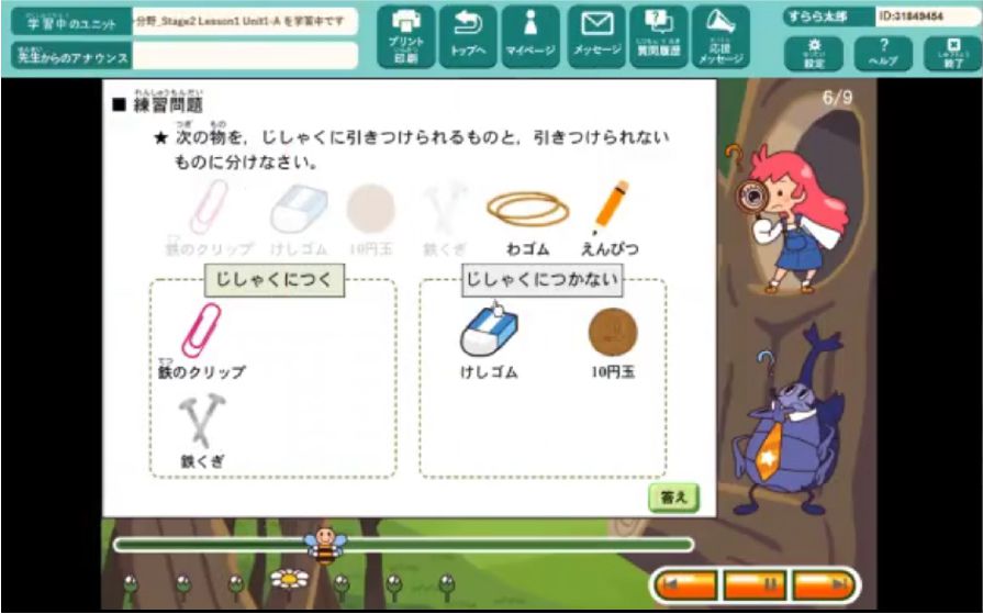 キャラクターの先生が途中質問を投げかけ、正解すると褒めてくれます。