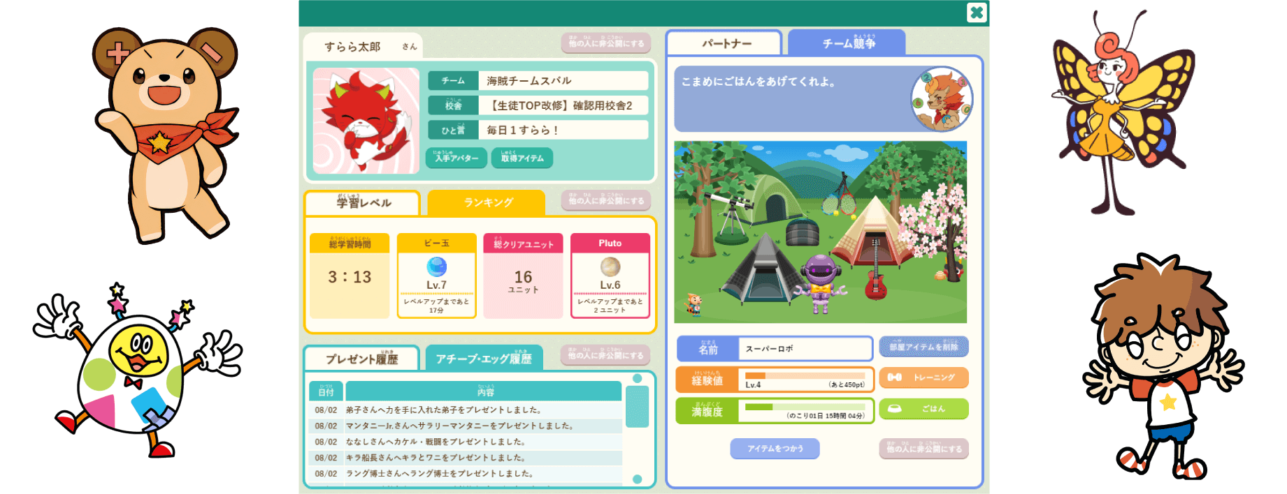 ゲーム感覚で楽しく勉強し、がんばるほどポイントが貯まりアイテムを集めることができるので、子どもの学習へのモチベーション引き上げをサポートします。