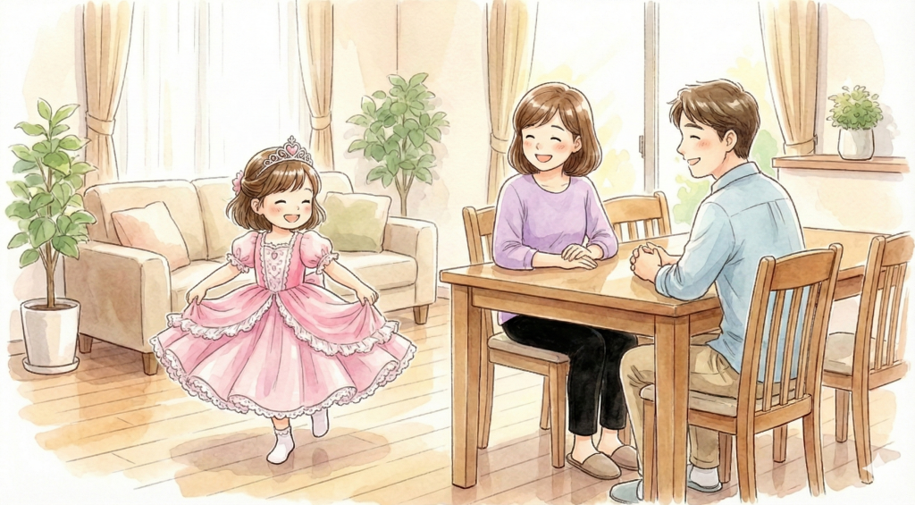 印象的だったのは、娘が「今プリンセスモードだから」と言って、自分からお手伝いをしてくれた事です。ドレスを着て楽しそうに手伝う姿を見て嬉しくなりました(笑)