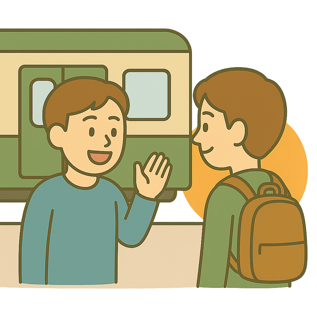 えきまでともだちを送った(おくった)。