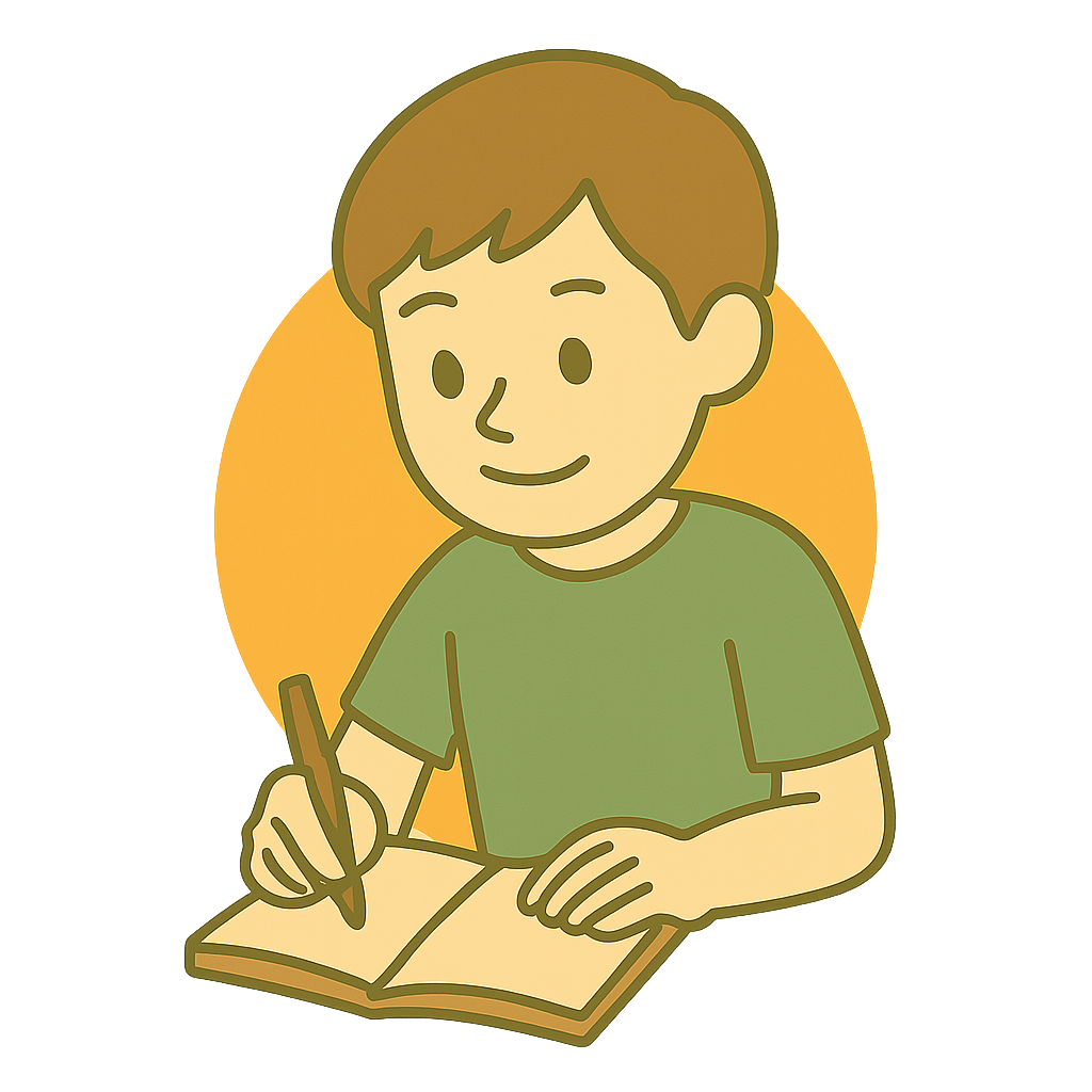 ぼうけんのことを日記帳(にっきちょう)に書く。