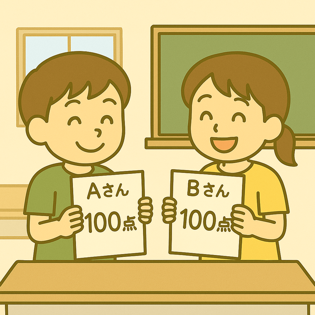 AさんとBさんの点数は等しかった(ひとしかった)。