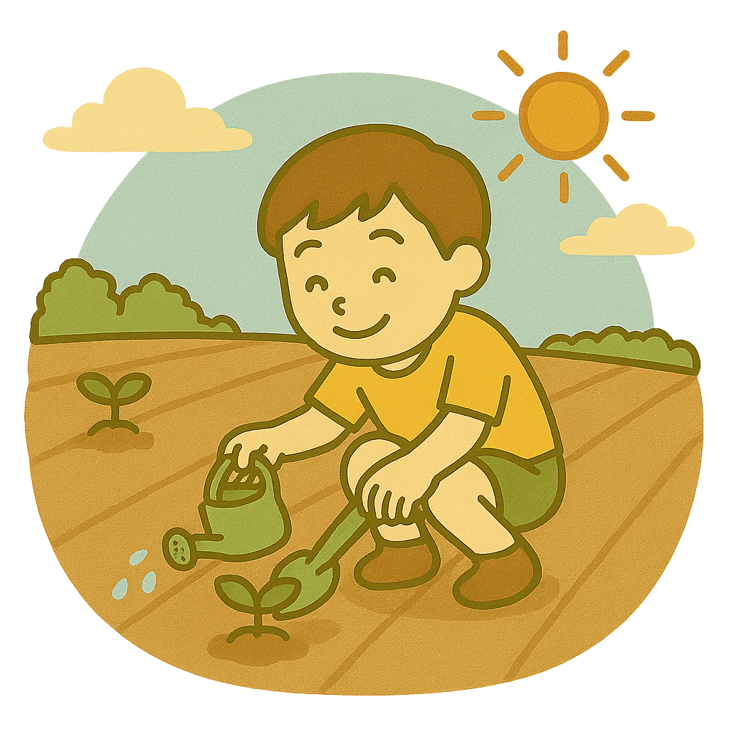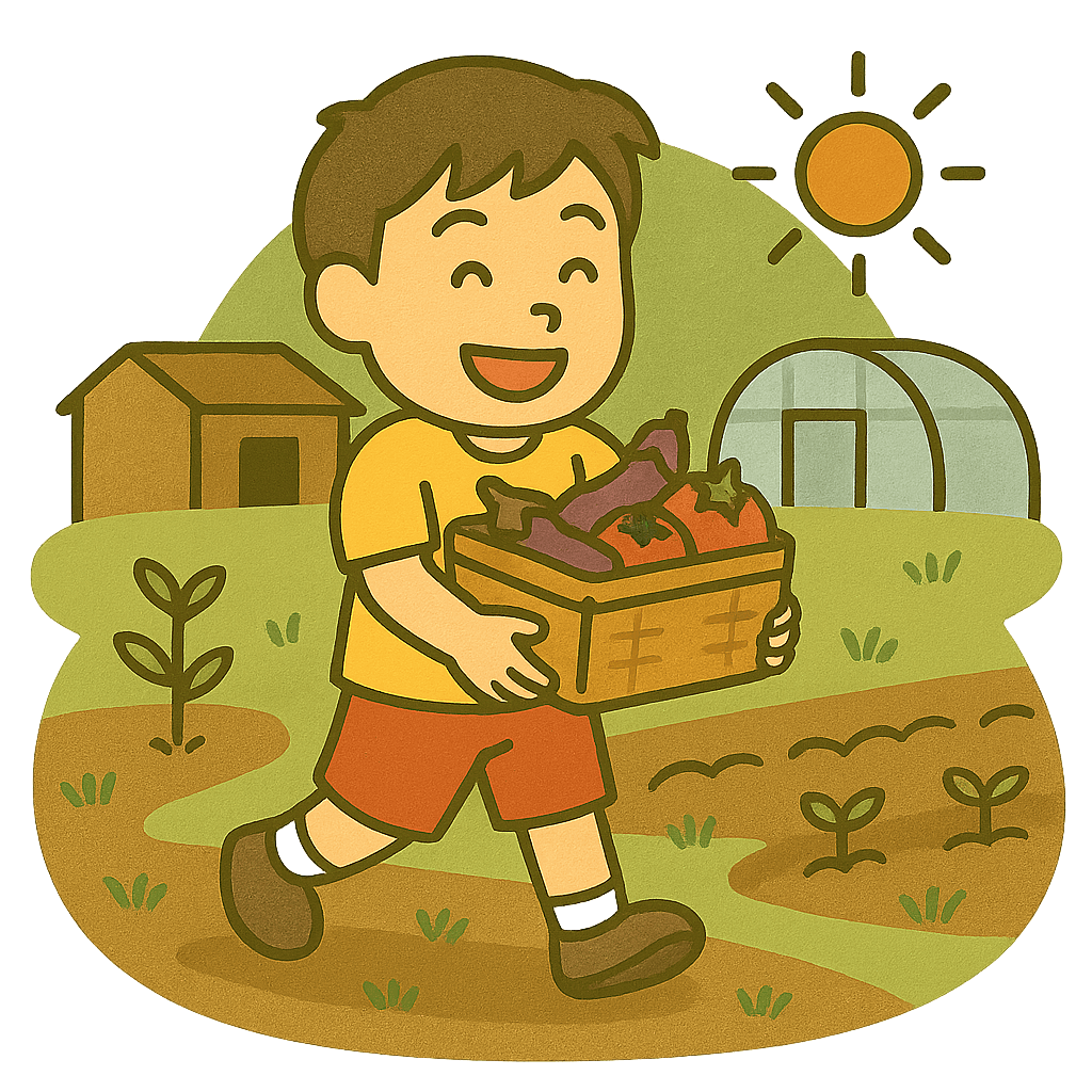 夏休みに農家(のうか)の手伝いをした。