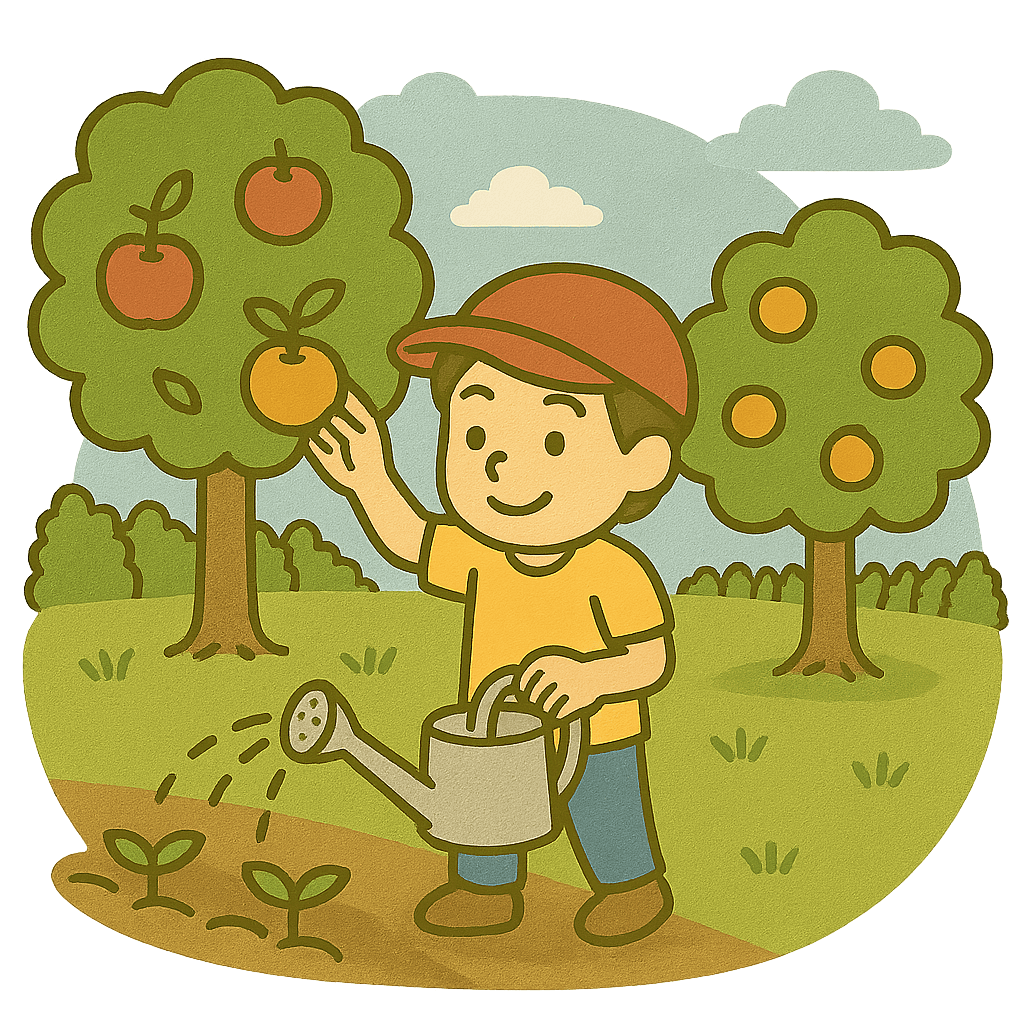 ぼくのいとこは農園(のうえん)で果物を育てている。