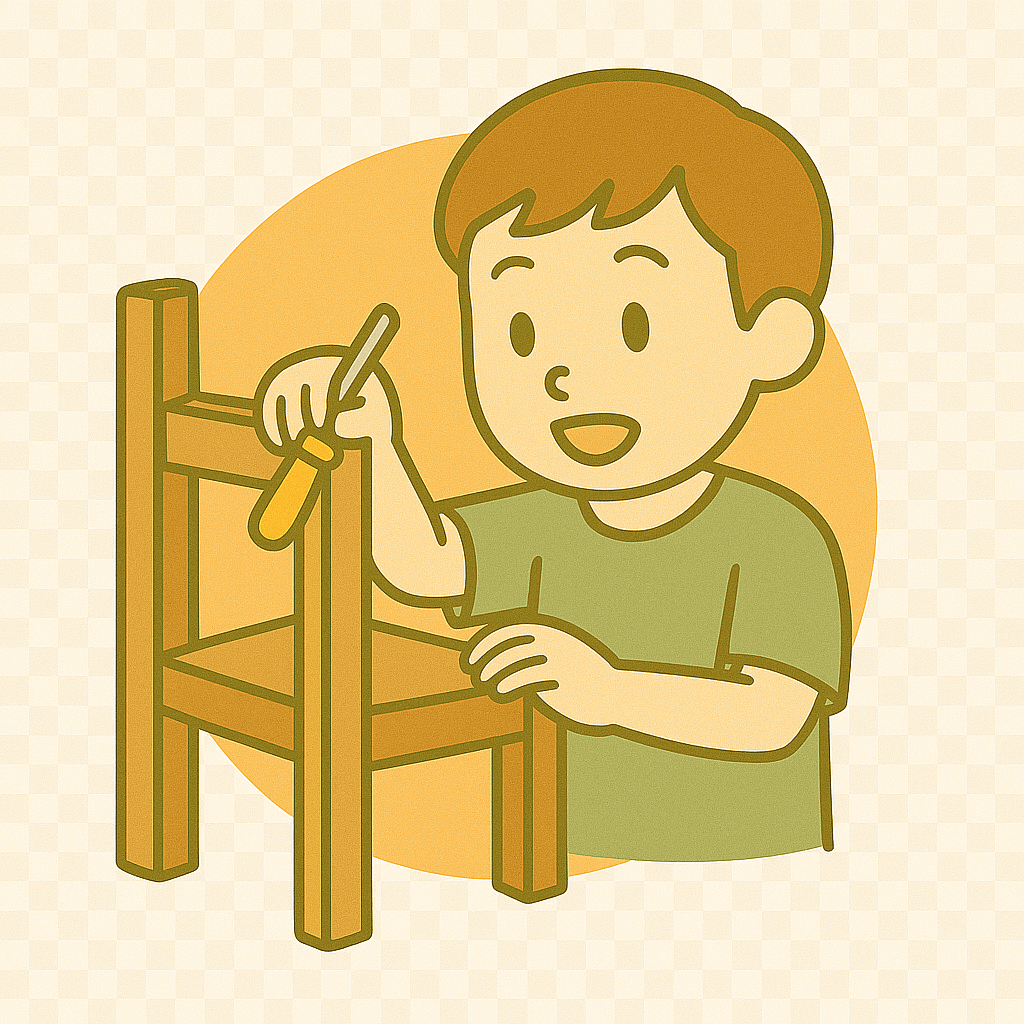 教室の掲示板(けいじばん)を見て予定をしらべる。