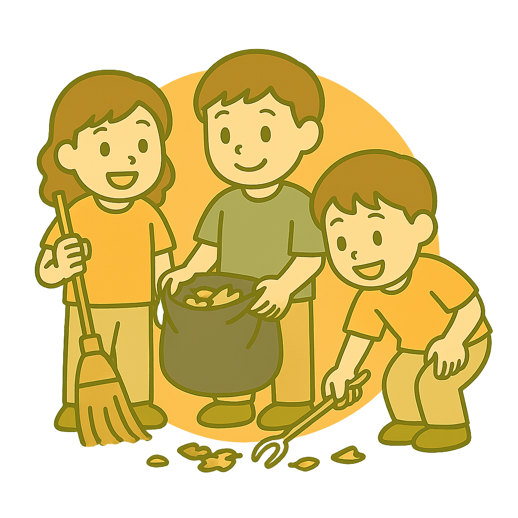 みんなで美化(びか)活動をして、校庭がきれいになった。
