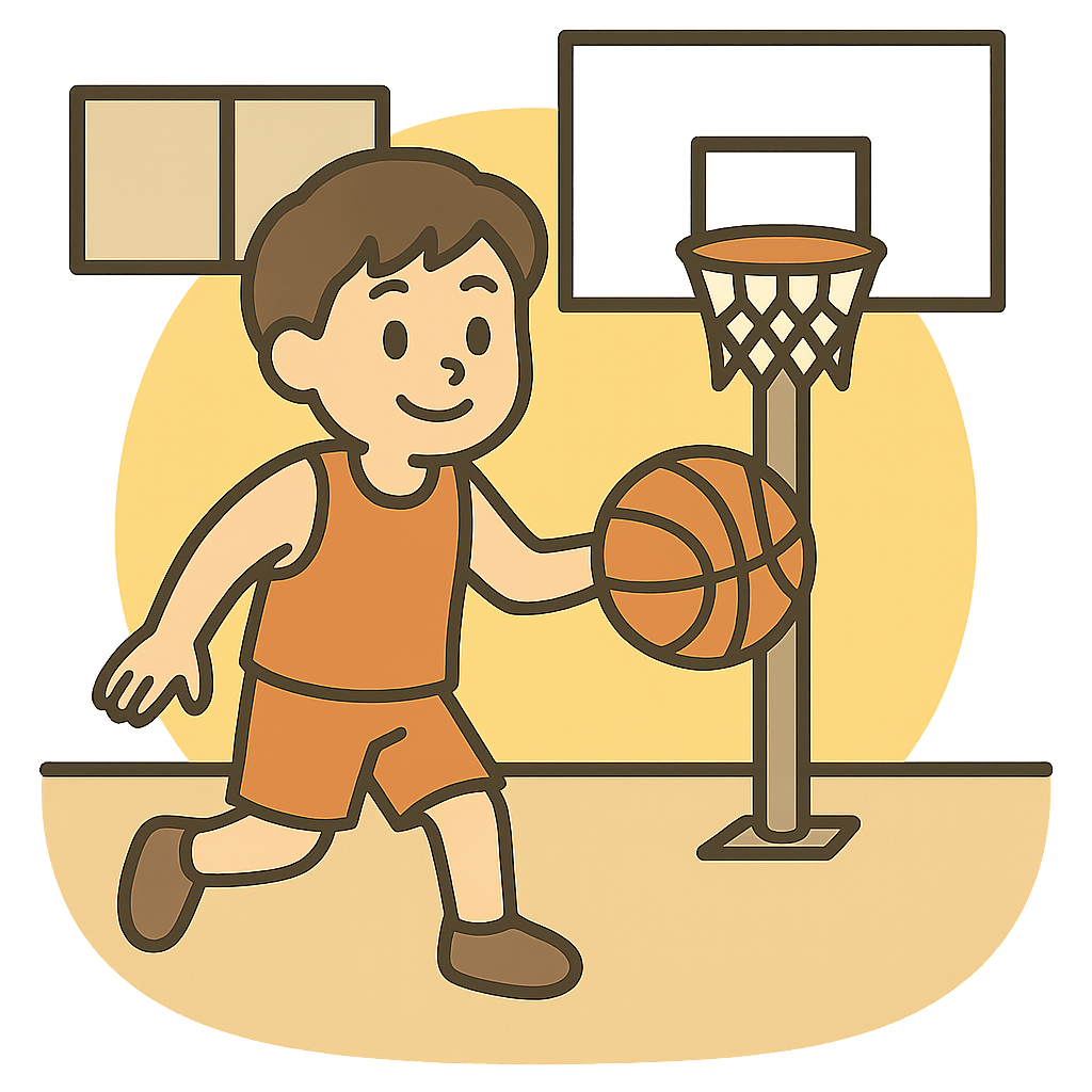 体育館(たいいくかん)でバスケをした。