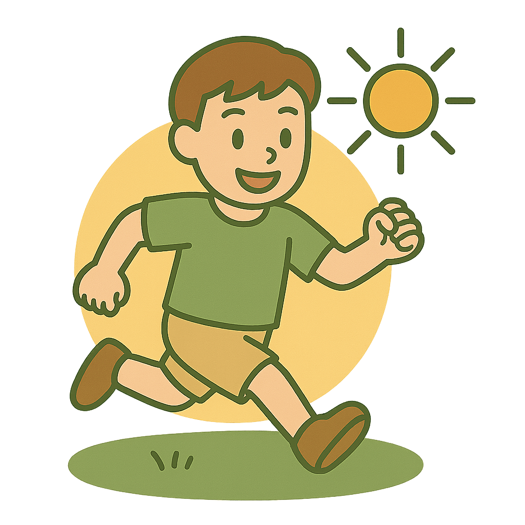 猛暑(もうしょ)でも元気に外で遊ぶ。