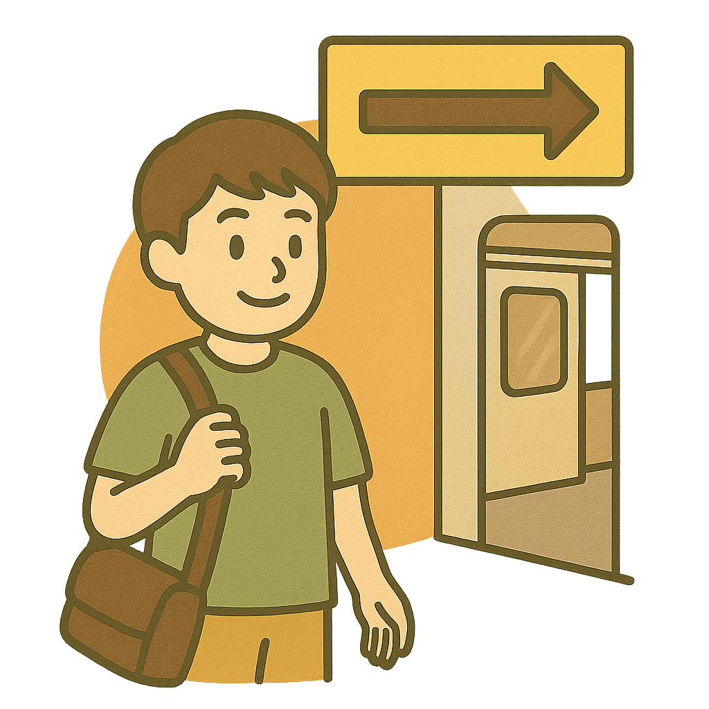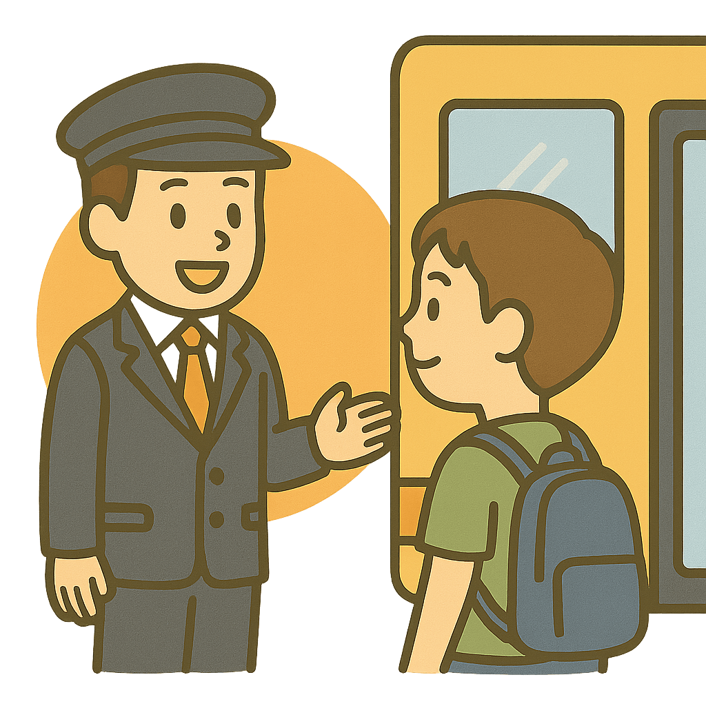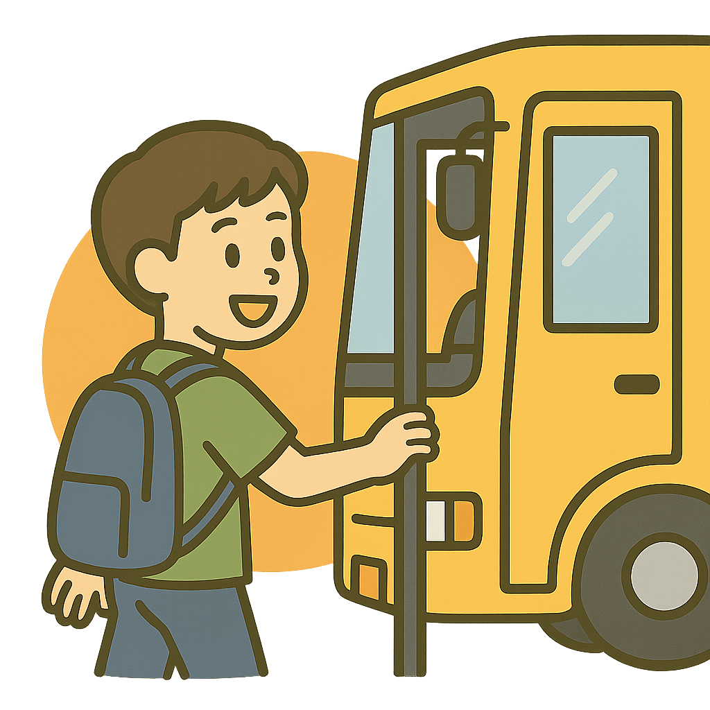 バスに乗車(じょうしゃ)する。