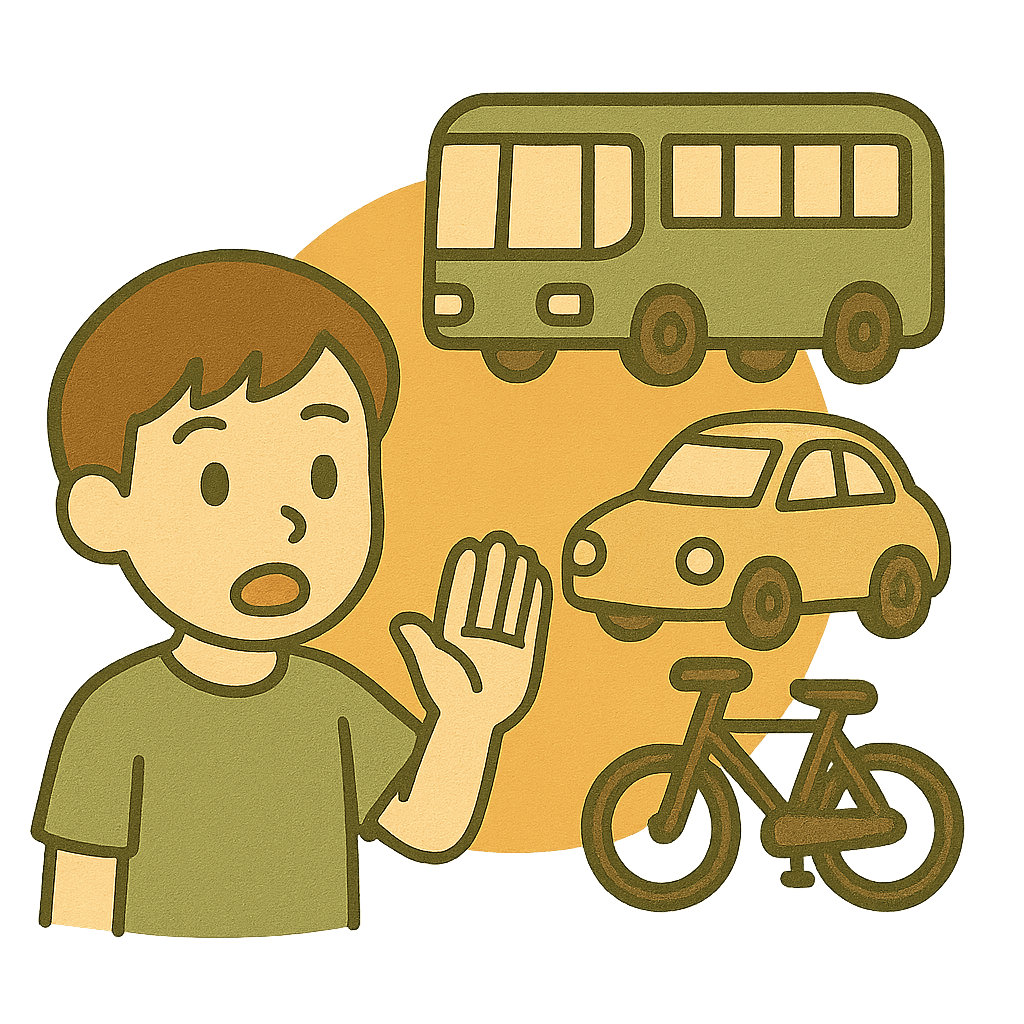 乗り物(のりもの)に気をつけてね。