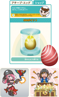 アチーブエッグ機能で目標達成率を一目で確認!卵が割れると中から色んなアバターたちが出現!