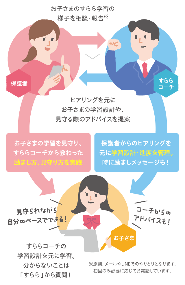 すららはお子さま・保護者・すららコーチの3者で