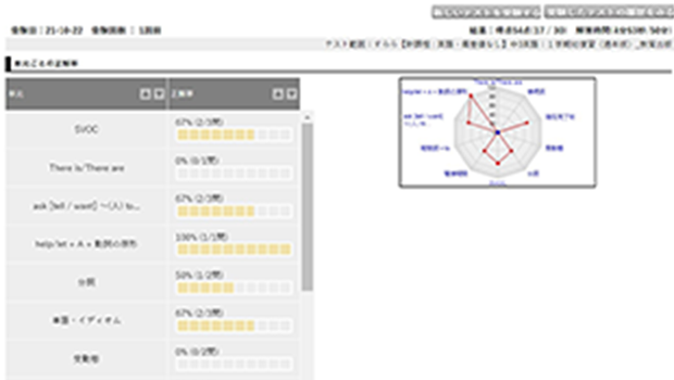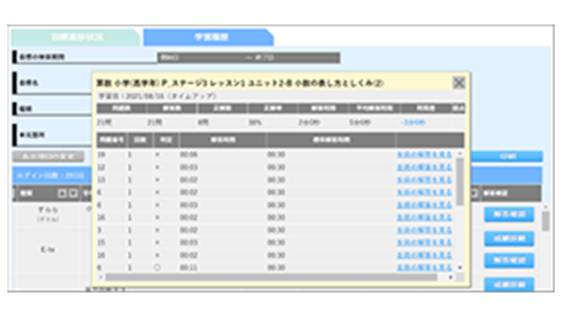 低学力層はもちろんのこと、学力の高い生徒にはどんどん難易度の高い問題に挑戦してもらうこともできます。そうすることで、生徒は好きなだけ先取りの学習を進めることができるのです。また、生徒の正答率や解答時間、学習状況などをクラスごとに管理することができますので、学校での活用にも有効です。