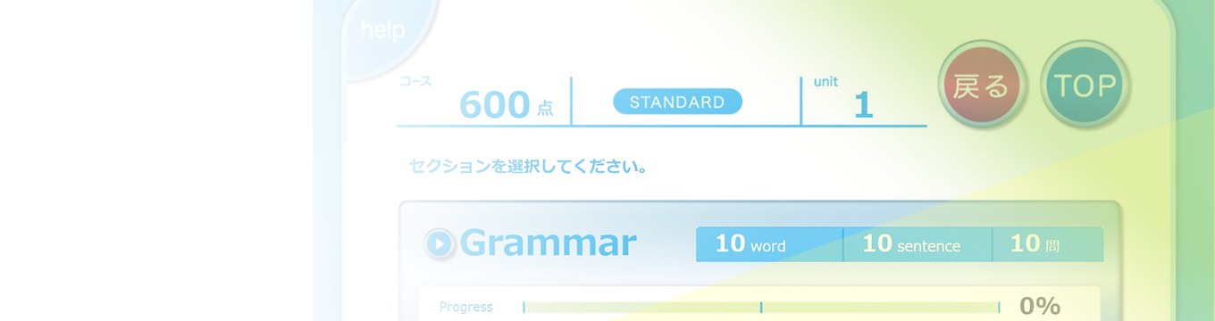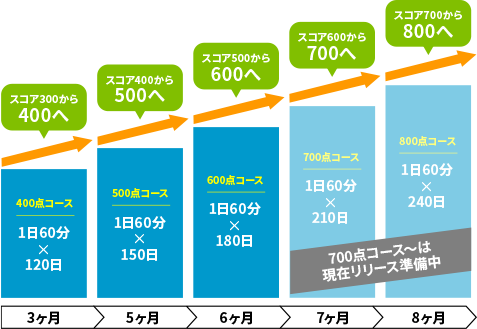 コースは400点を目指す400点コースから、800点を狙う800点コースまでの5コース。(現段階では400点・500点・600点コースをお使いいただけます。)