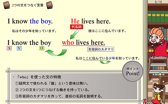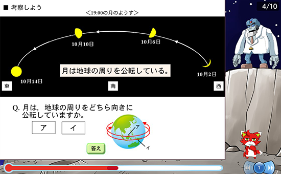 講義中は一方的な解説ではなく、年齢に応じたキャラクターが「わかったかどうかを確かめる質問」を投げかけるインタラクティブな講義となっているため、飽きずに集中して取り組むことができます。