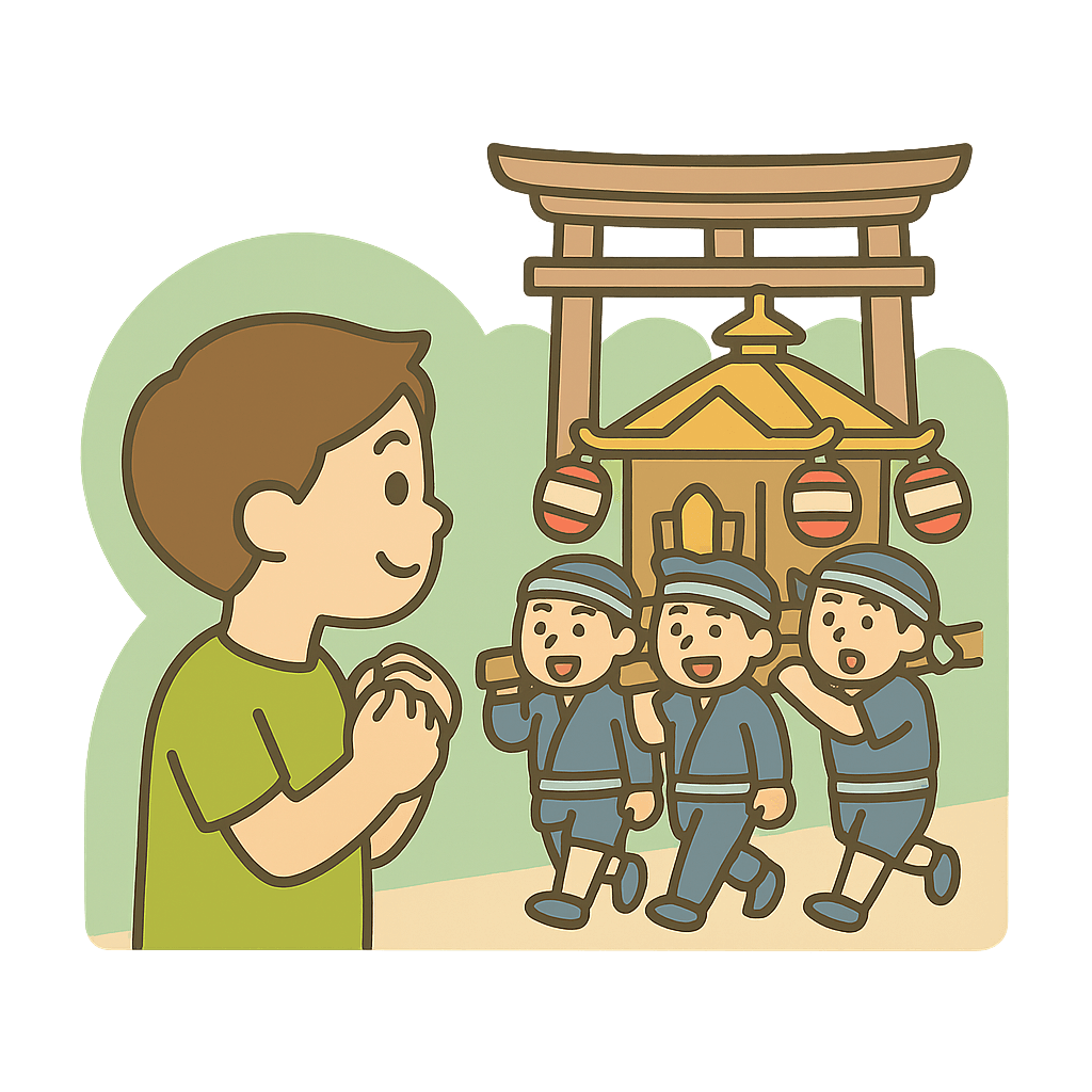でまつりを見る。