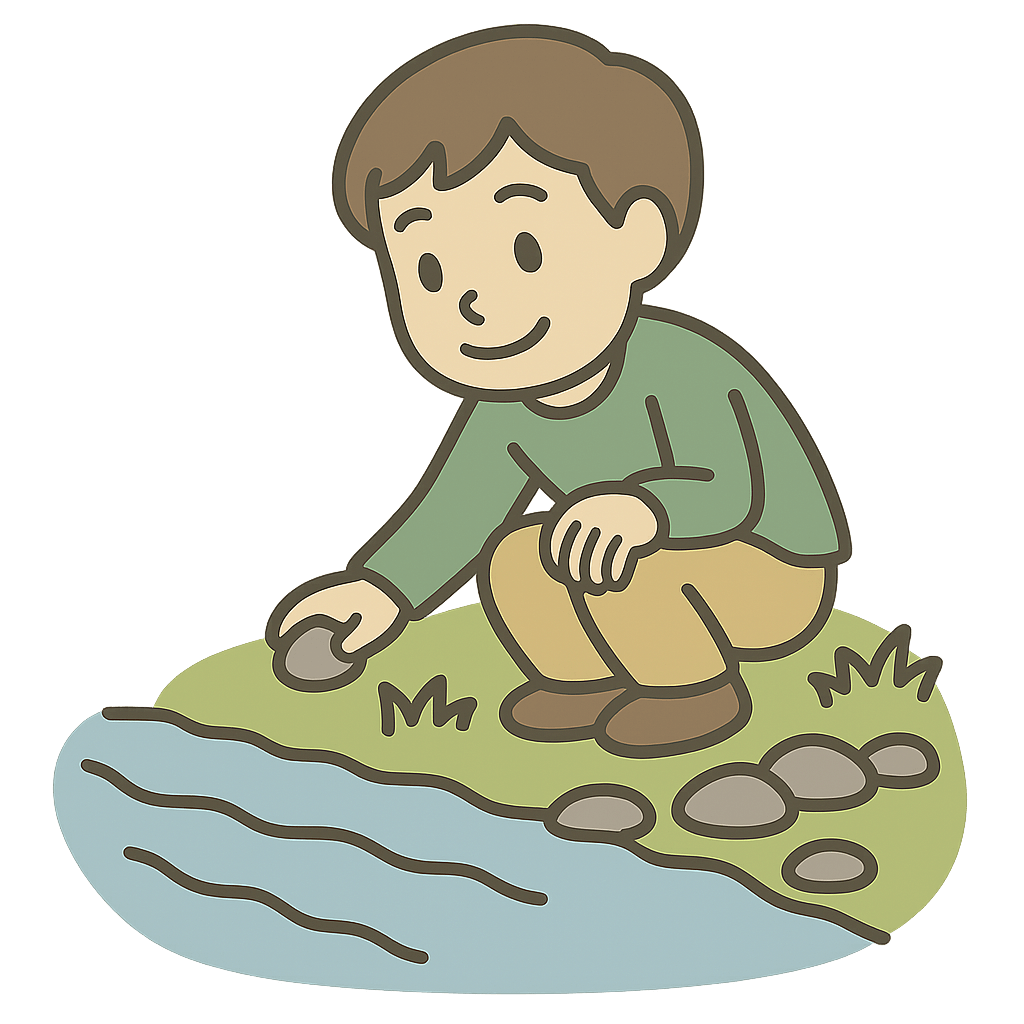 で石をひろう。
