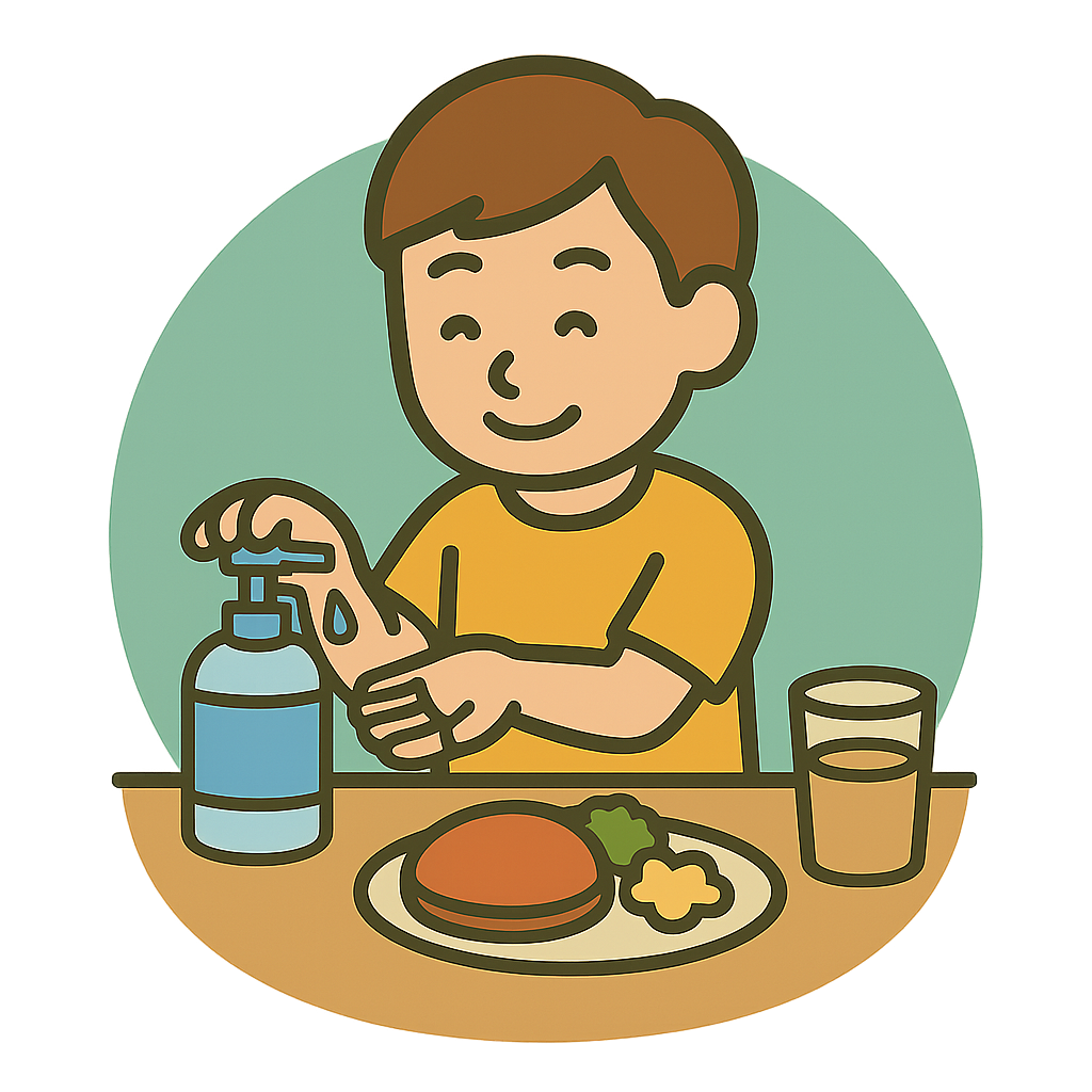 してから食事をする。