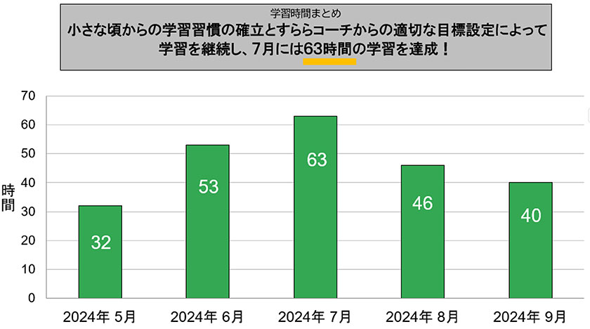 ちょっと学習時間も拝見させていただいたのですが、7月に63時間も勉強されていて、とてもよく頑張っていらっしゃいますね。